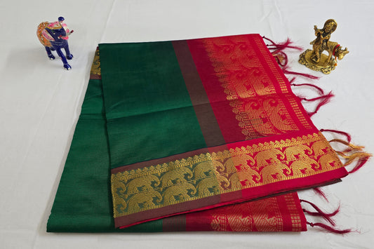 Discover our exclusive collection of handwoven Kanjivaram silk sarees, crafted by skilled artisans of Kanchipuram. From rich bridal designs to lightweight soft silks, our sarees celebrate the heritage of South Indian weaving.