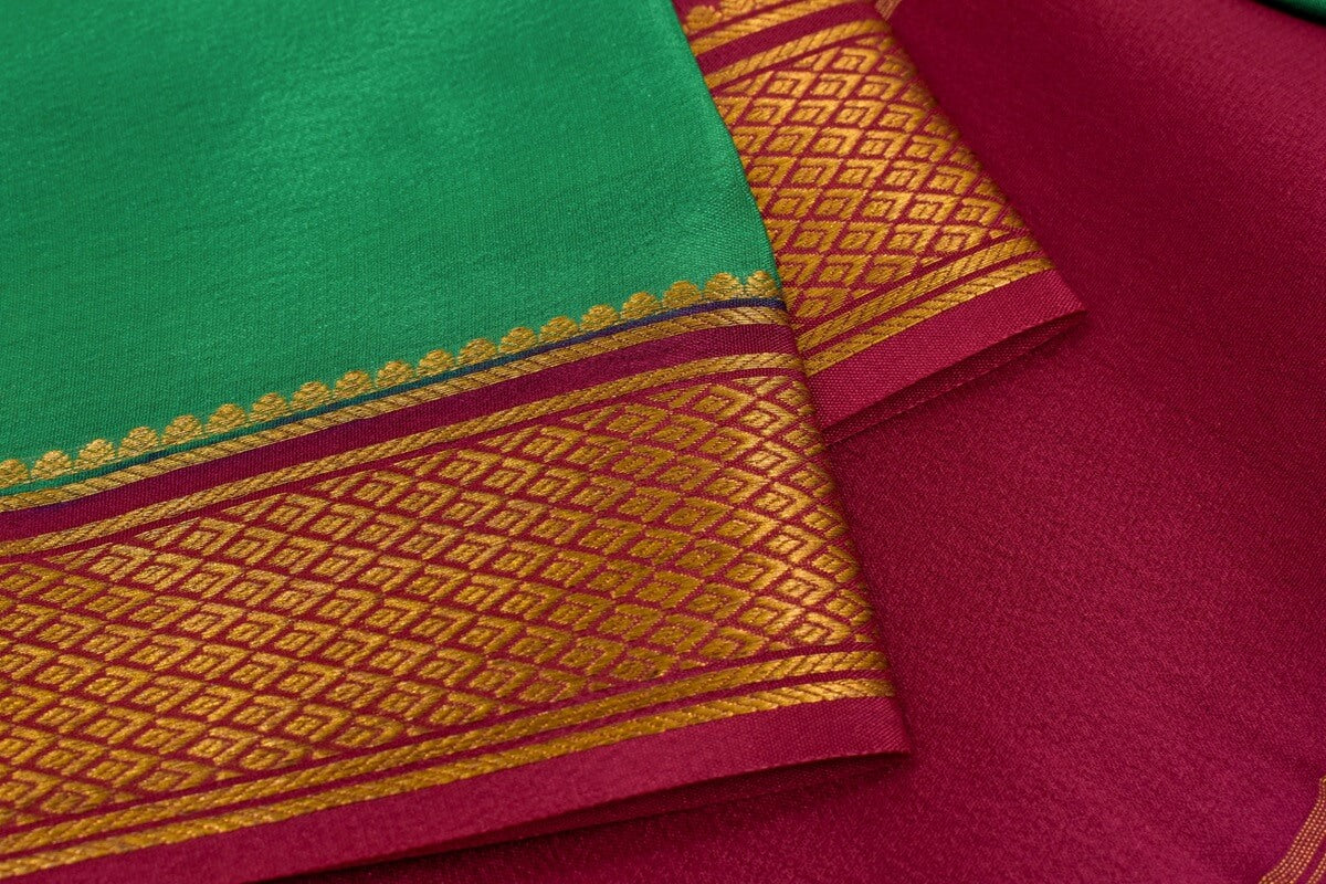 A Bluish Green Crepe saree with Pink Borders, this Silk Weave Crepe PSAC0901177 is sure to impress. Soft and luxurious, the fabric of this saree is perfect for a formal occasion while the beautiful colors will make any outfit stand out.