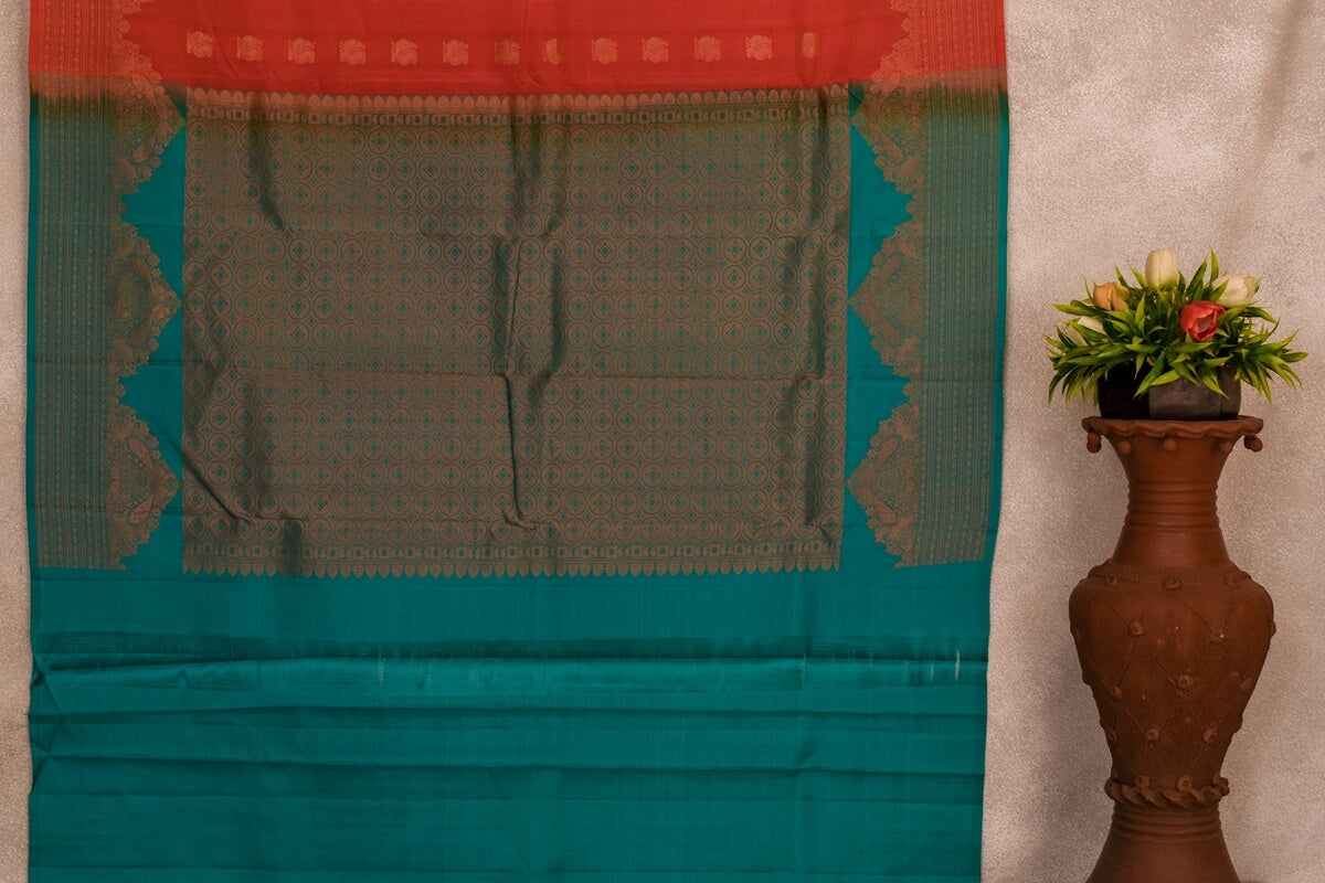 Expertly crafted with a dual tone of pink and orange and a greenish blue pallu, the Silk Weave PSAC0901128 saree is made from luxurious soft silk. Indulge in elegance and sophistication with this piece of elegance.