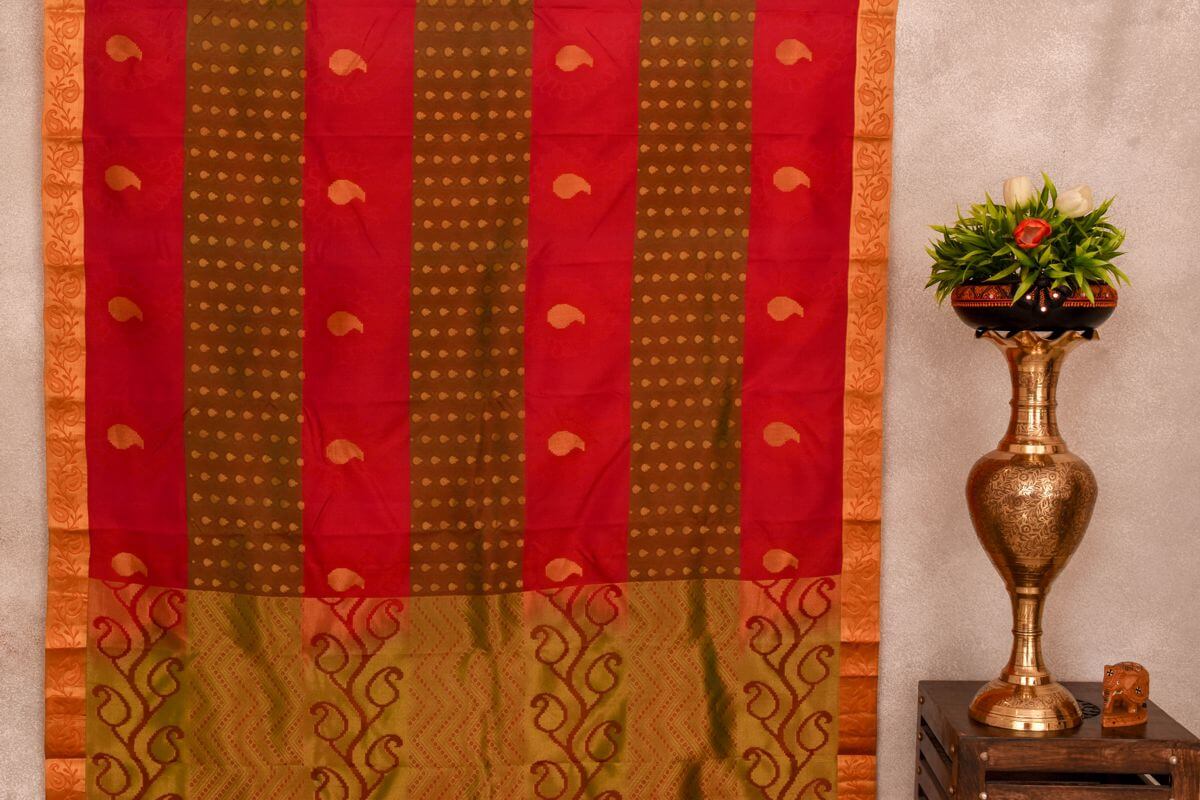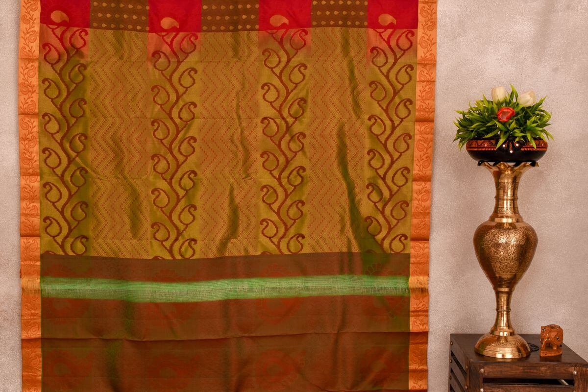 Store the saree in a dry and cool place. We recommend dry cleaning the saree rather than washing. If you have to iron, use low heat and apply iron over a cotton cloth. If possible, change the fold inside out once in three months to prevent dust accumulation.