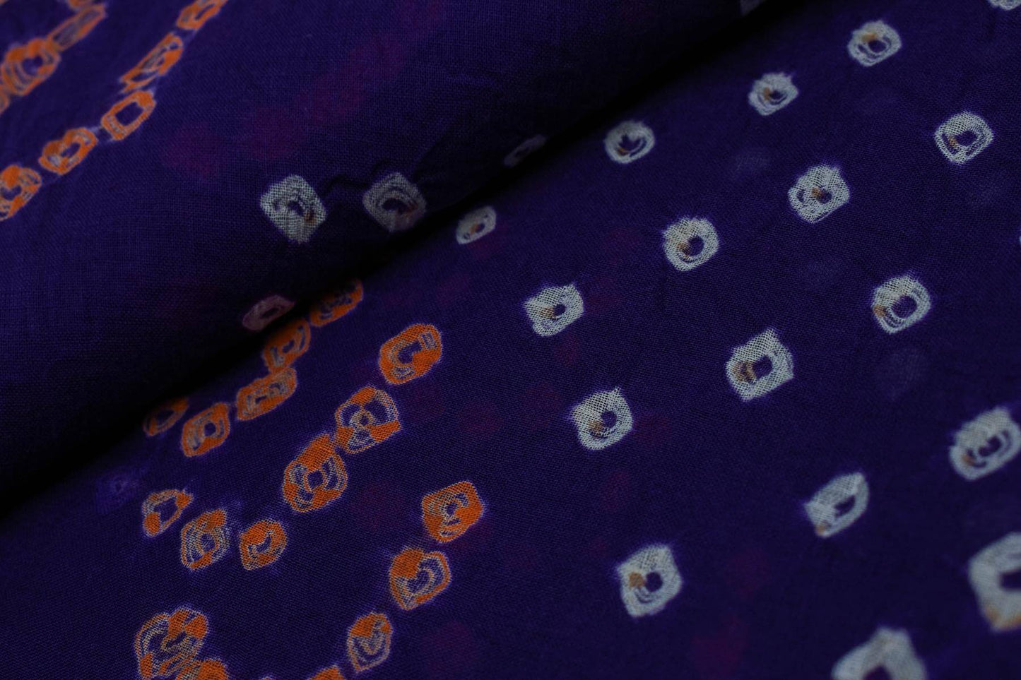 Elevate your style with this Bandhani Mul Cotton Saree by Chakor PSCK260315. The traditional purple body with matching paloo and blouse embodies pure elegance. The lack of borders adds a modern touch, making this saree perfect for any occasion. Make a statement with this expertly crafted saree.