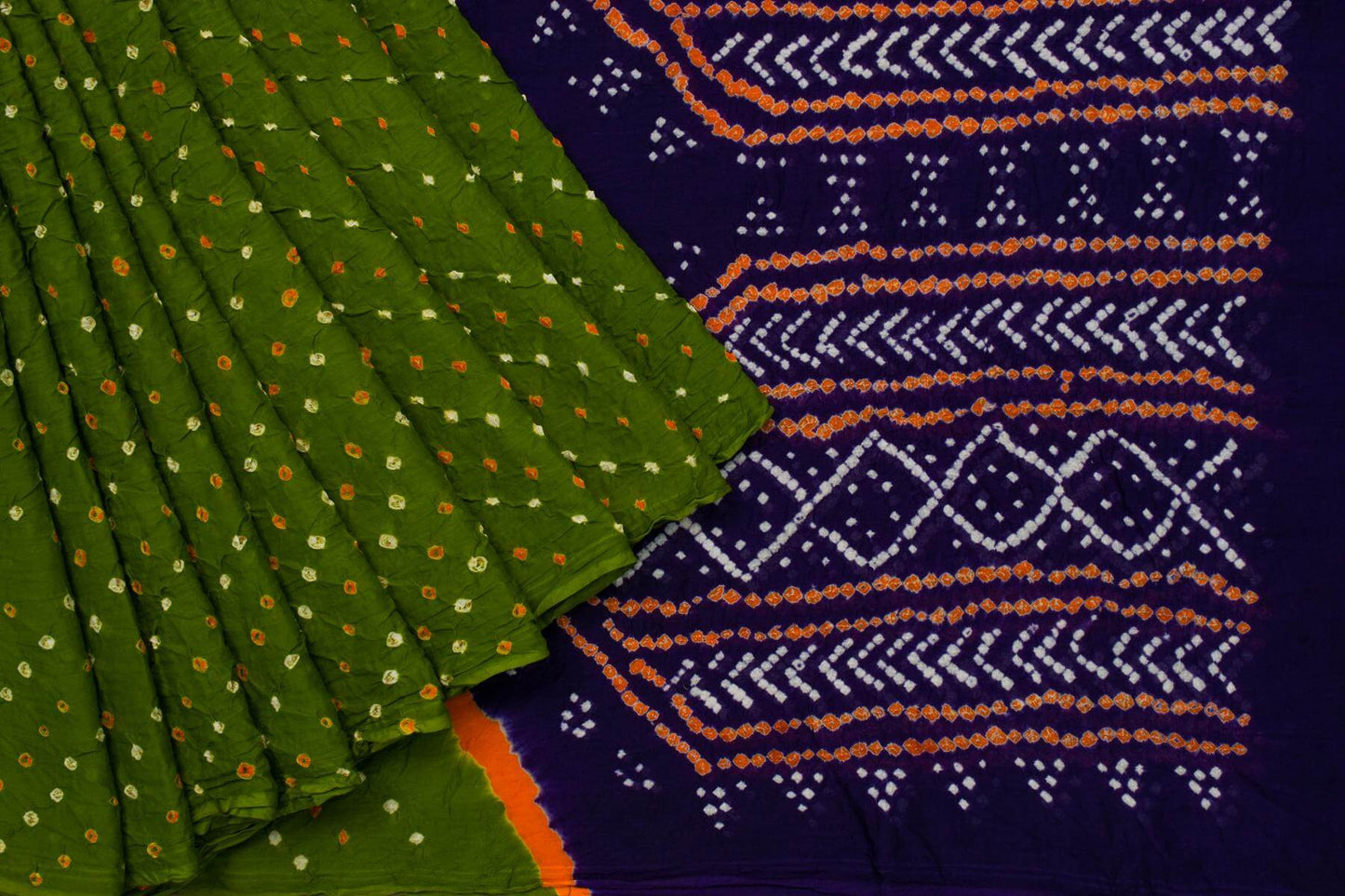 The Bandhani Mul Cotton Saree by Chakor PSCK260325 features a mehendi body and blouse, with no borders and a striking purple paloo. Expertly crafted from high-quality cotton, this saree is a must-have for any elegant occasion. The unique design and vibrant color make it a timeless addition to your wardrobe.