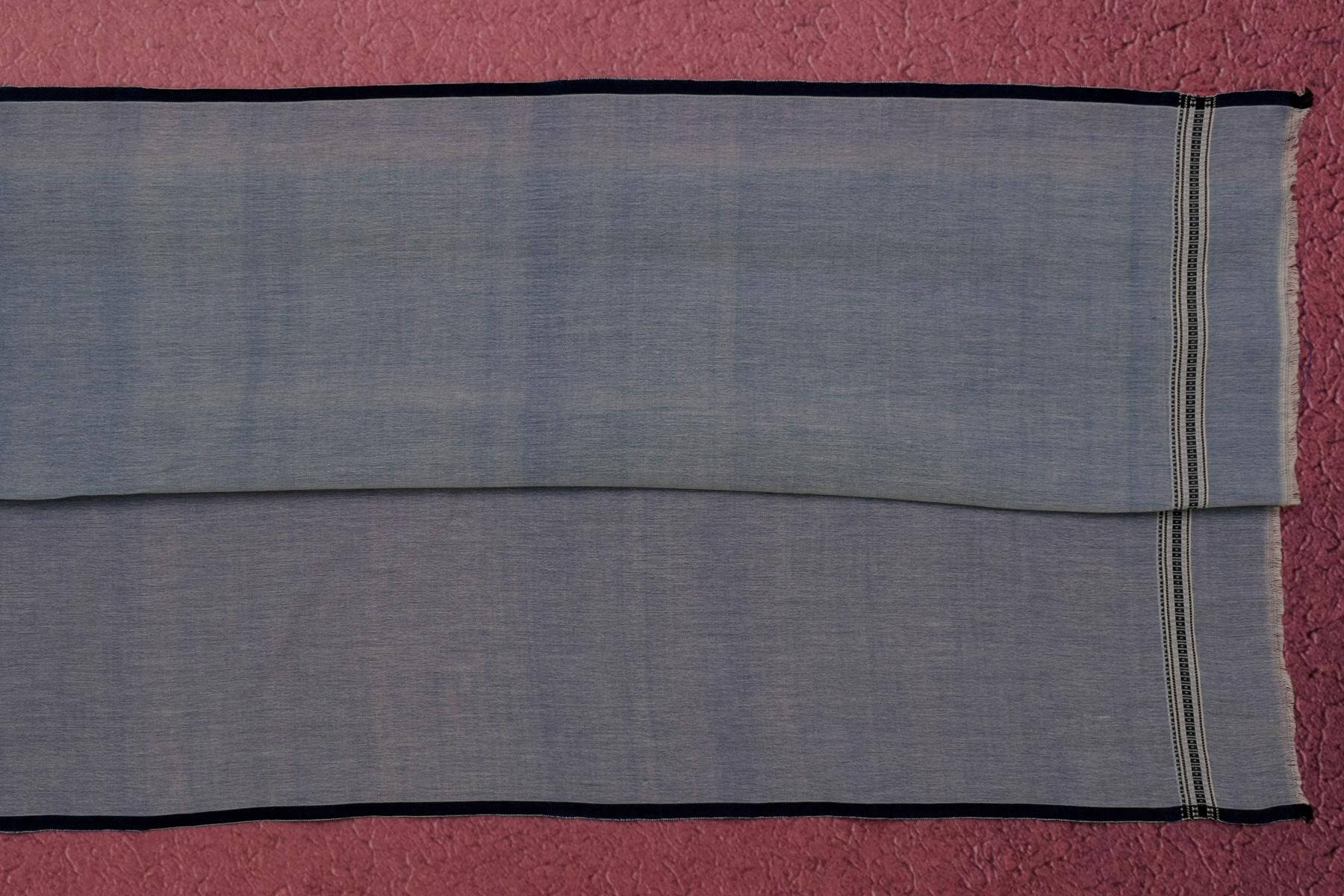 This Bhujodi Cotton Saree by Chakor PSCK260303 features a beautiful off-white body with black borders, highlighted by an off-white and blue paloo design. Complete with a mild blue blouse, this saree is perfect for any occasion. The high-quality cotton material ensures both comfort and style.