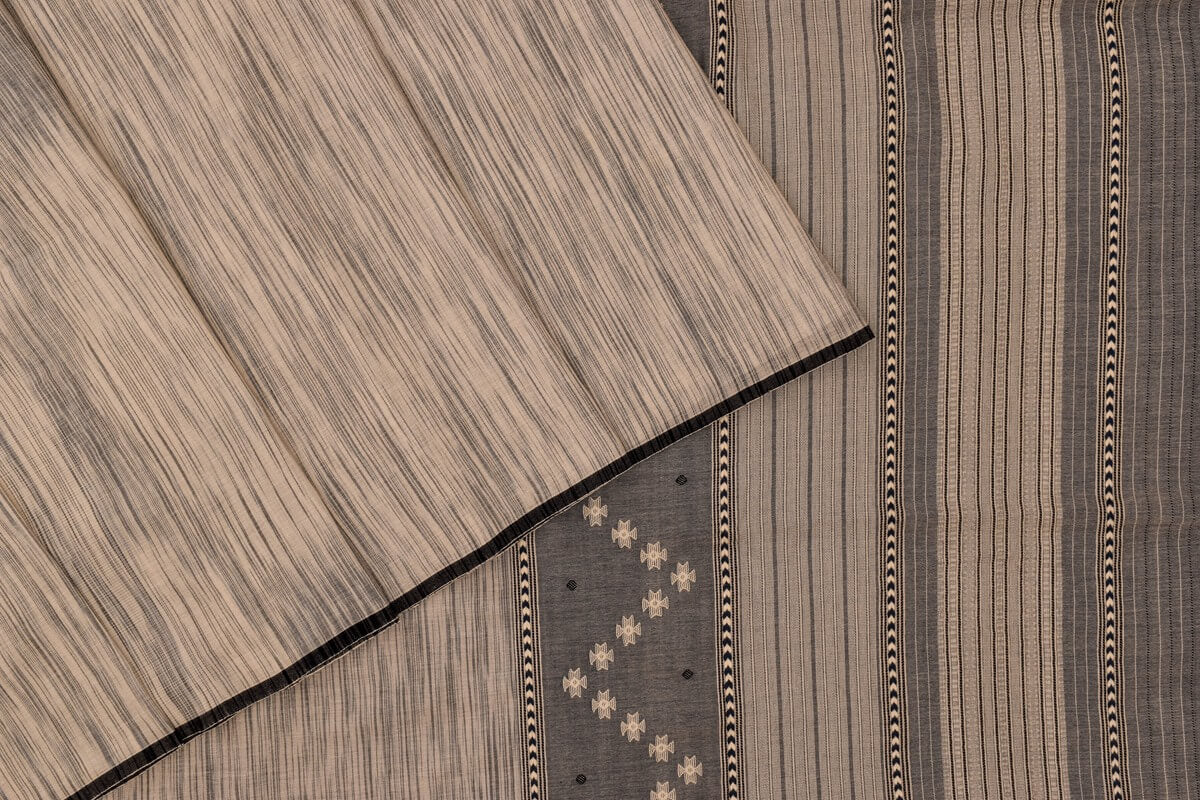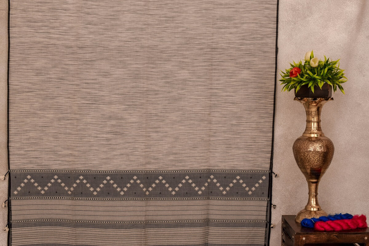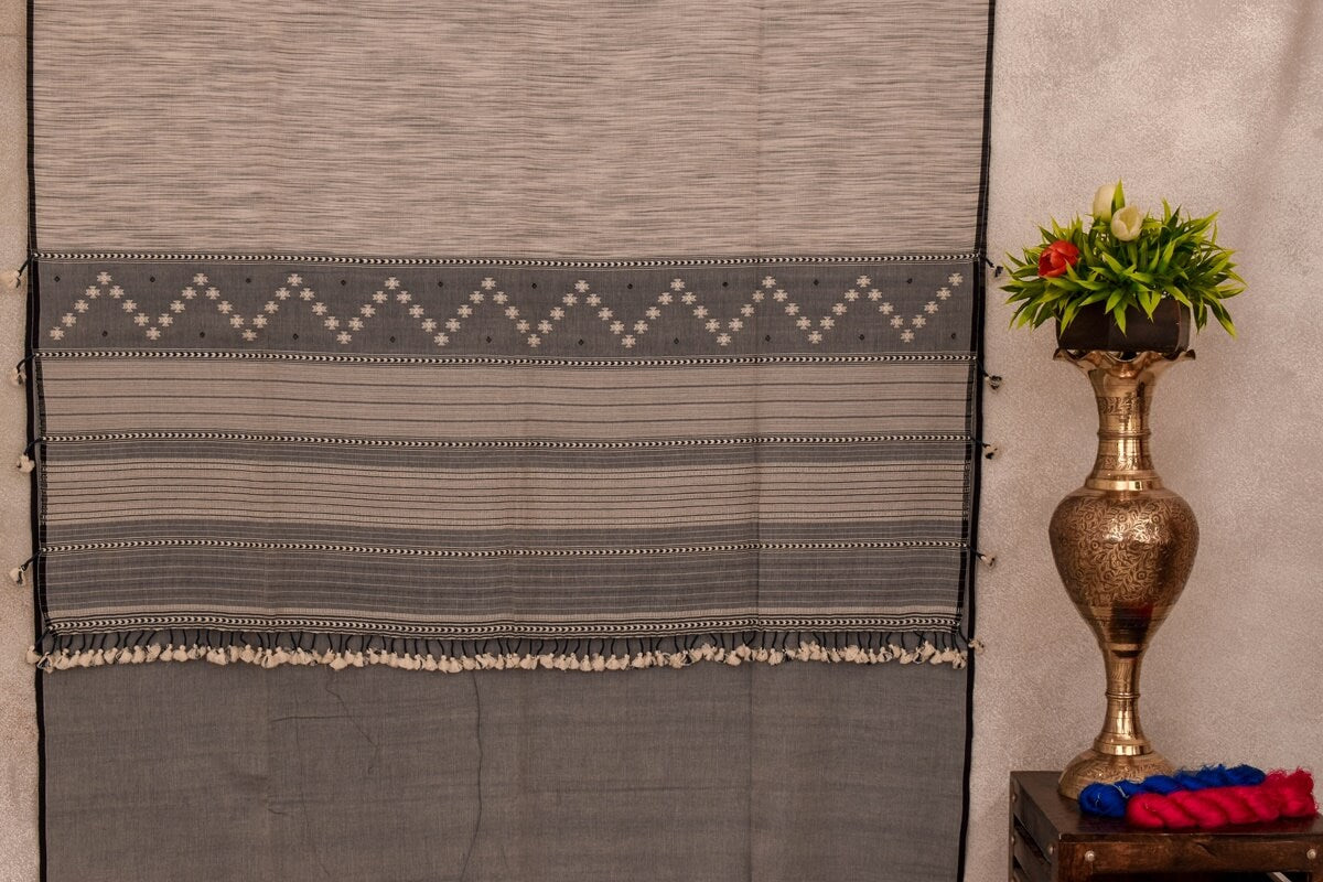 This Chakor Bhujodi cotton saree is crafted from a lightweight, breathable fabric, making it comfortable to wear in any season. The offwhite hue and no borders give this saree an elegant finish, perfect for any formal or semi-formal occasion.