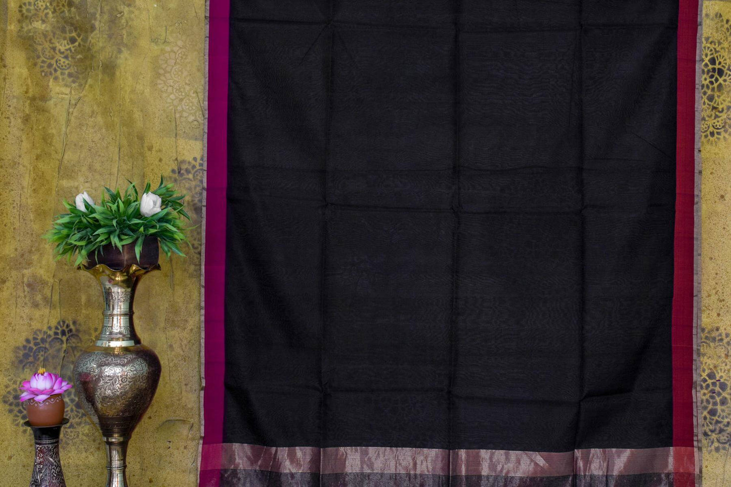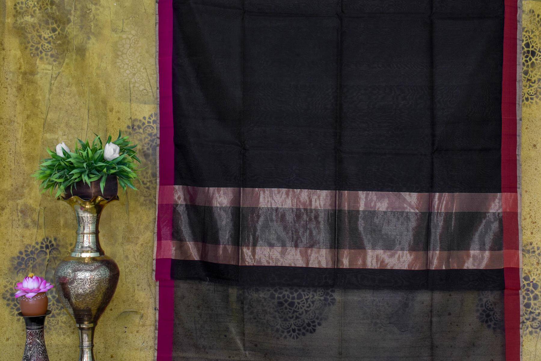 Black Chanderi Silk Cotton Saree by Chakor PSCK260231