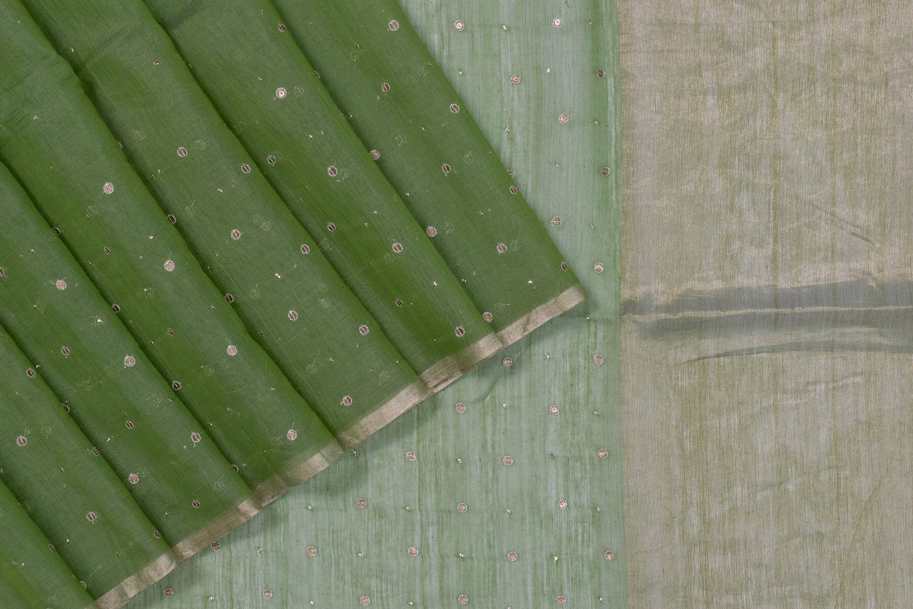 Expertly crafted by Chakor, the green Chanderi Silk Cotton Saree (PSCK260255) features exquisite borders, paloo, and blouse. Experience the perfect blend of traditional and modern with this elegant saree.