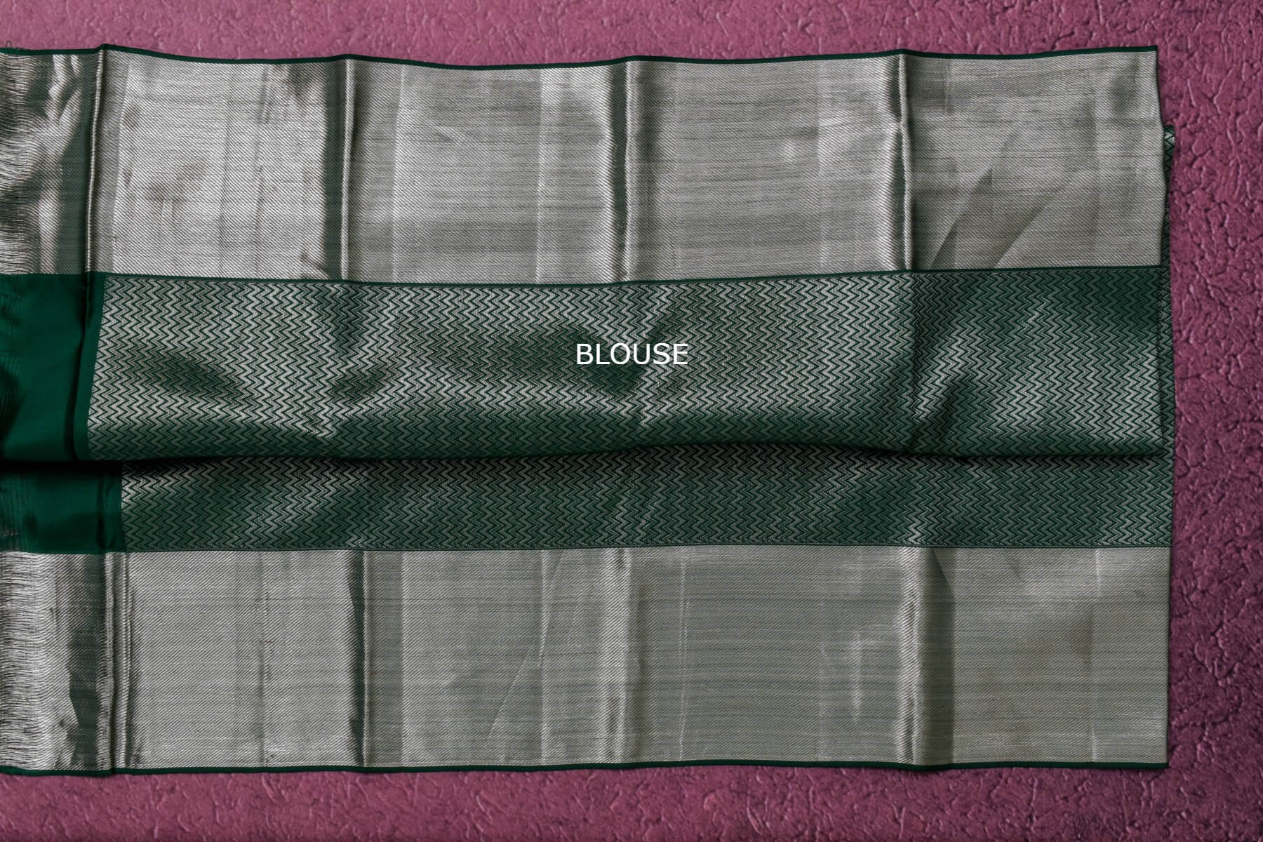 Deep Green with Silver Zari Kanjivaram Silk Saree by Tharakaram PSTK04066