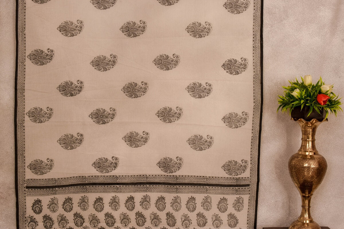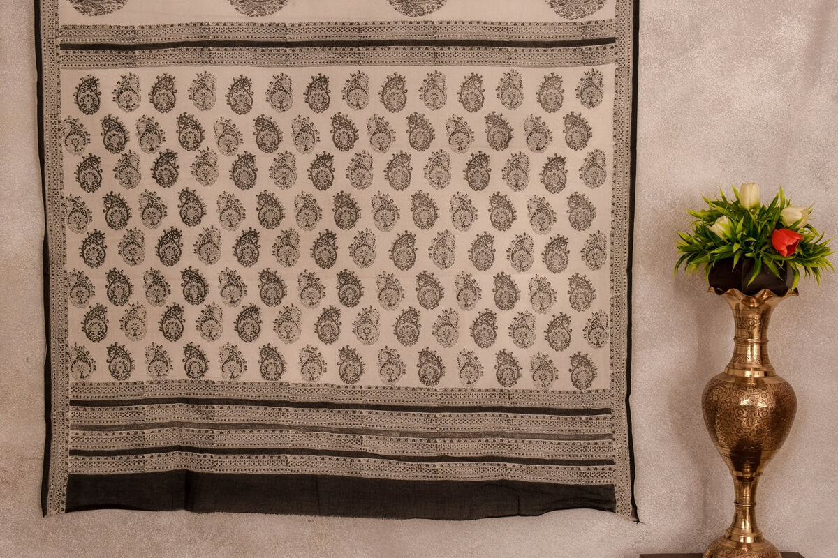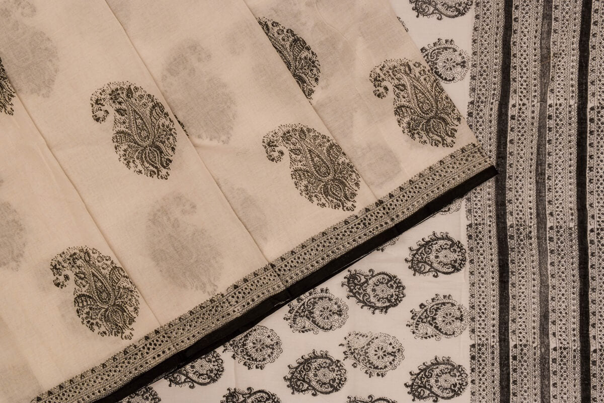 The Inheritance India Cotton Saree is a timeless classic. Crafted with off-white cotton and detailed with hand block printed paisley prints, it's sure to add effortless elegance to any look. Perfect for a special occasion or a casual day out.