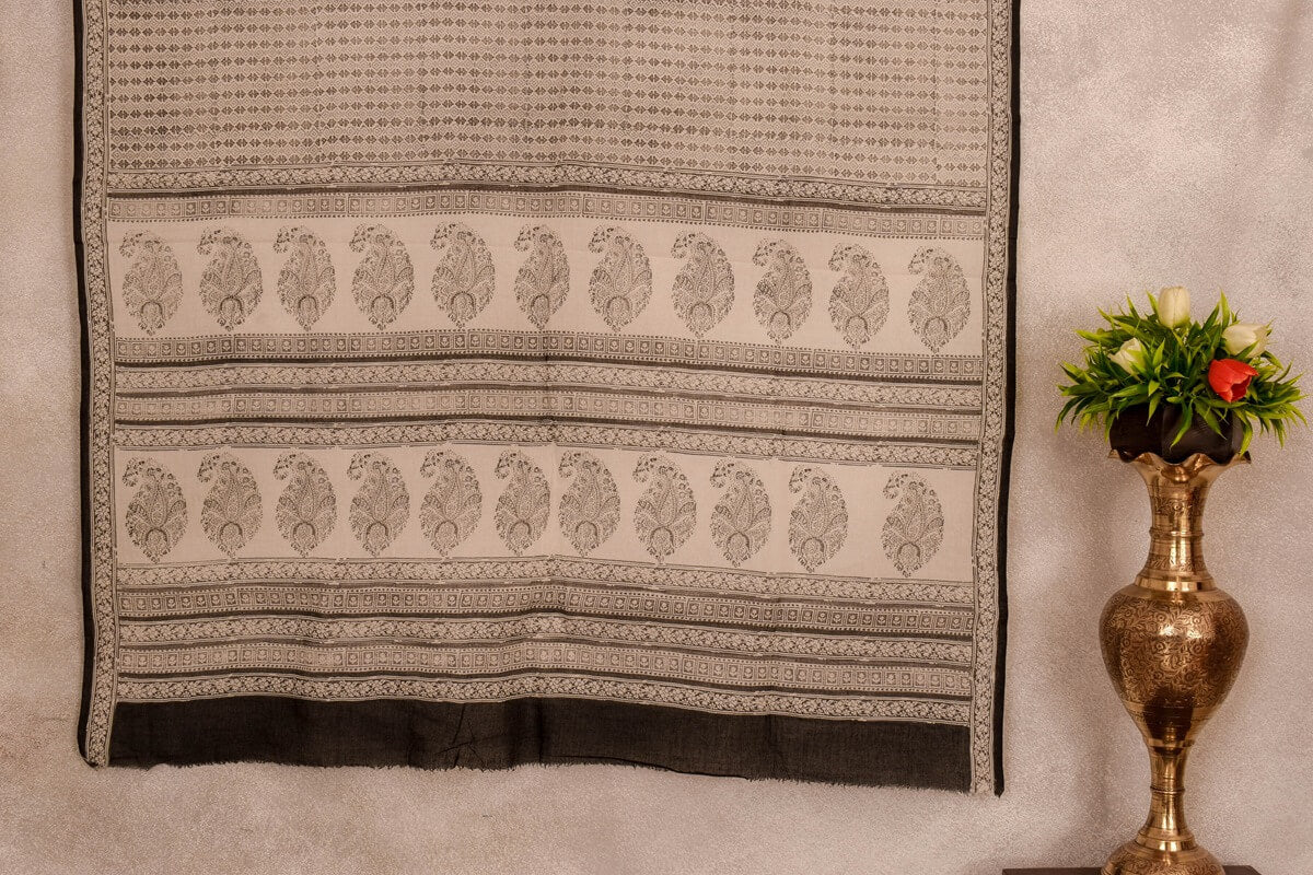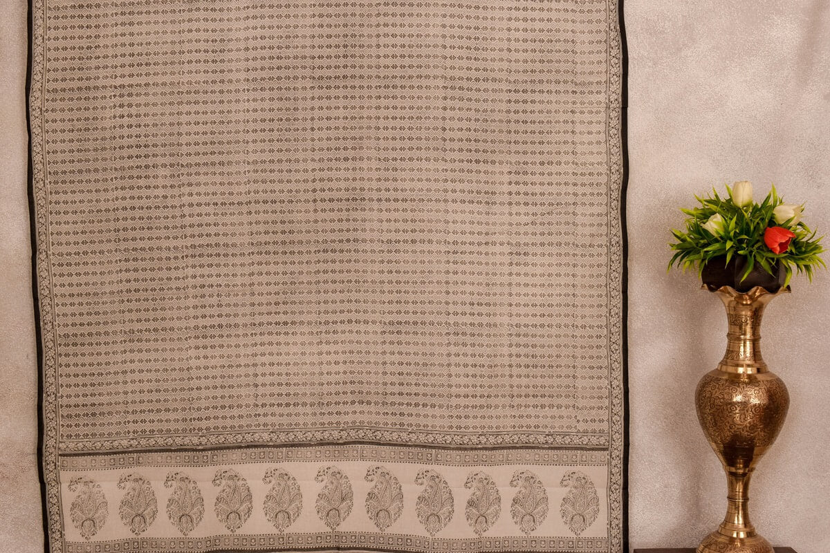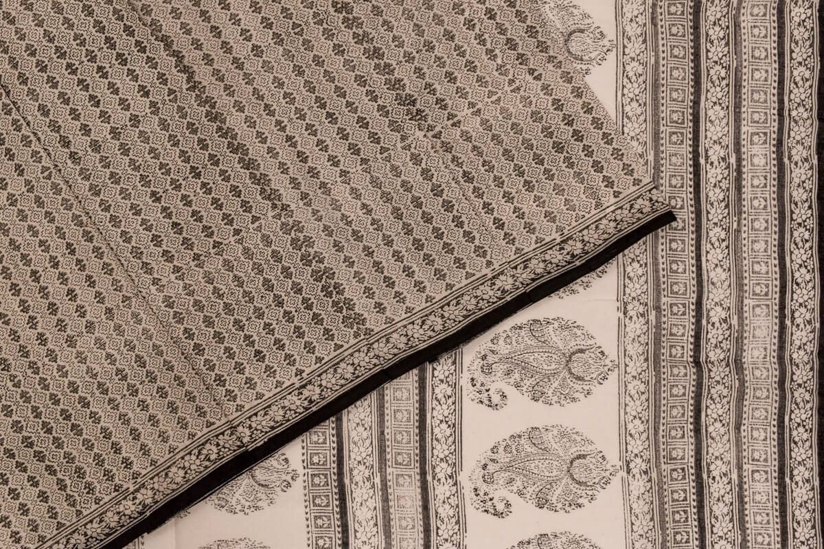 This hand block printed cotton saree by Inheritance India is crafted from pure off white cotton, making it lightweight and easy to maintain. The printed design adds a sophisticated charm, perfect to wear for any special occasion.