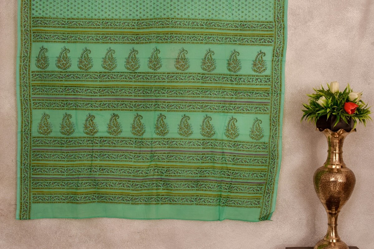 This beautiful Inheritance India saree features an exquisite bluish-green floral hand block print, crafted from quality cotton. The print and fabric ensure the saree is breathable and light, perfect for all-day wear in warm weather. Make sure you have a special occasion ready for this standout statement piece!