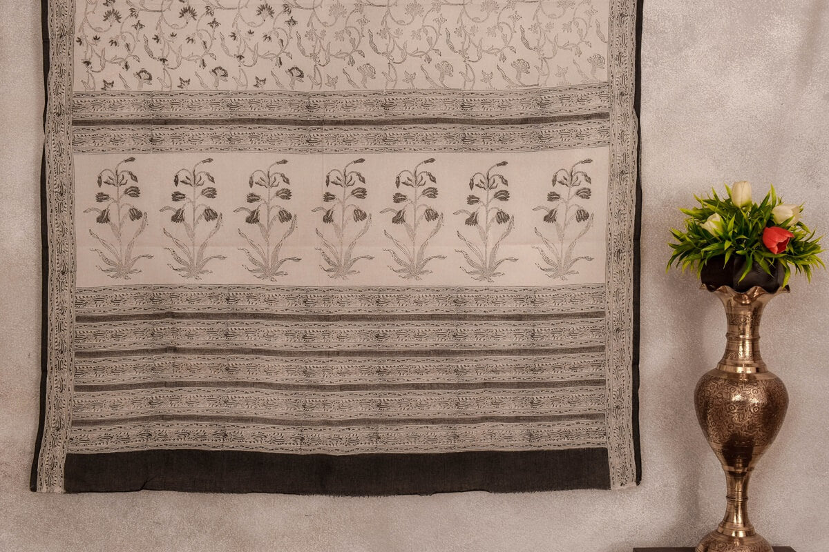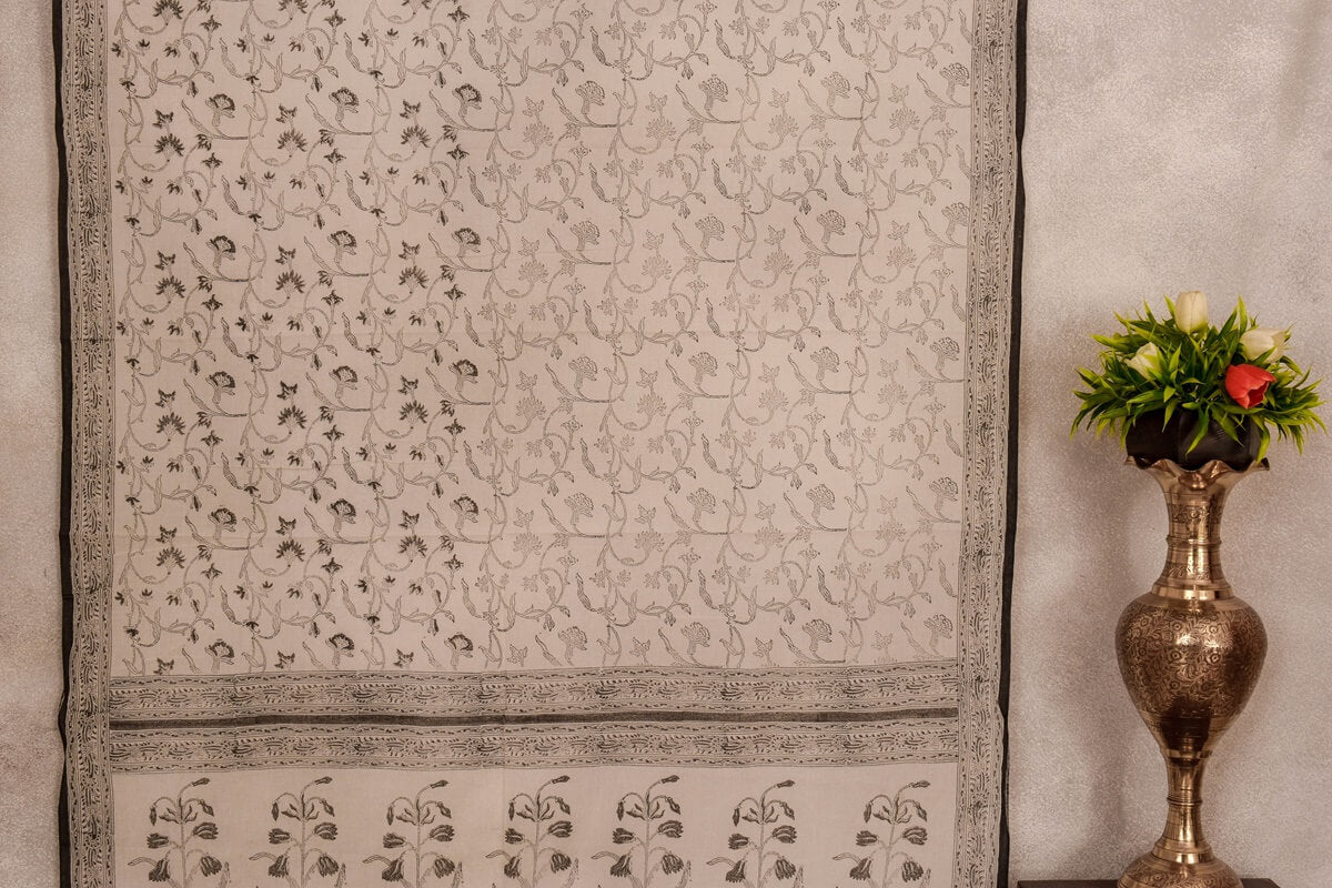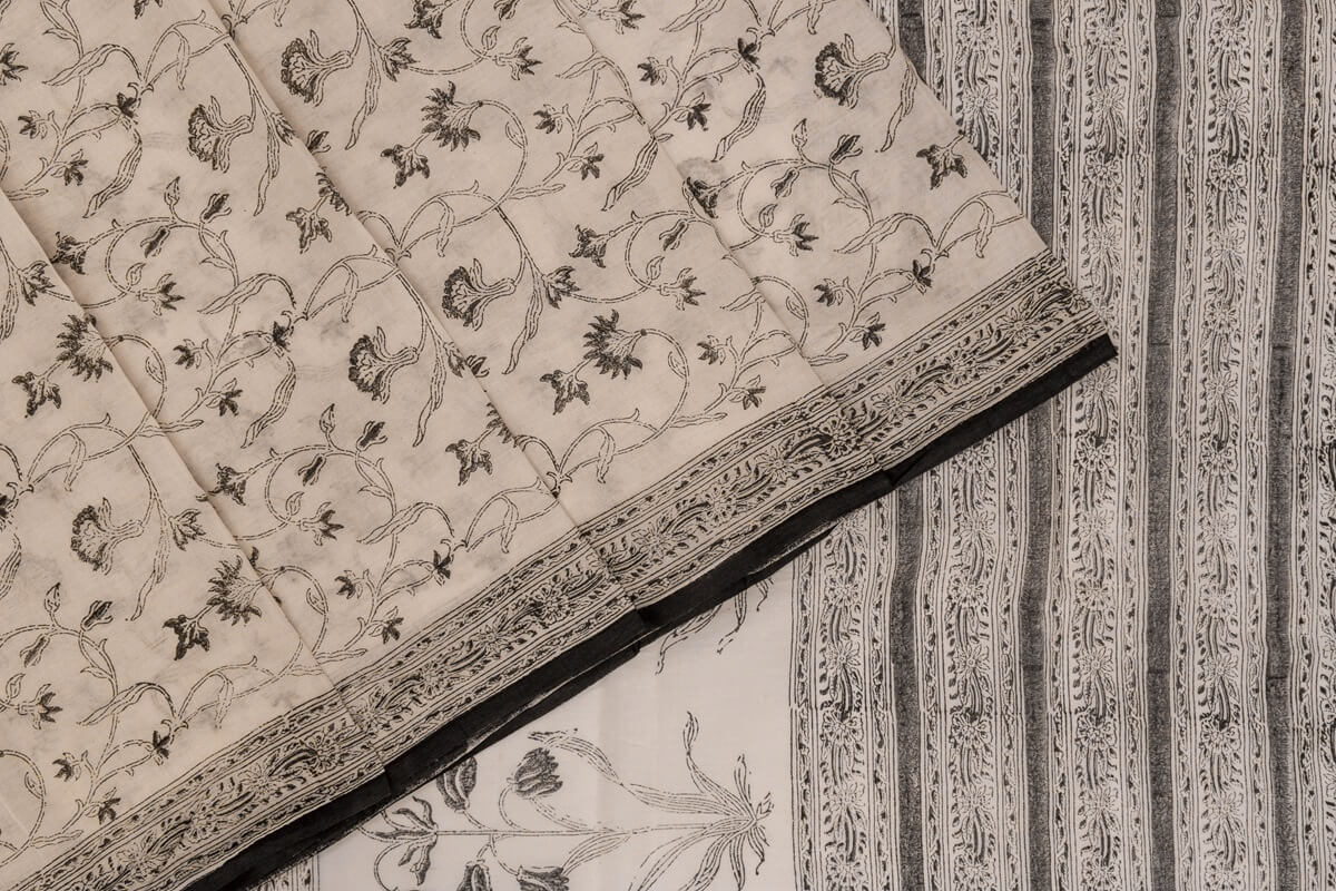 This stunning saree from Inheritance India is crafted from cotton with an off-white block print for a timeless, elegant look. The lightweight breathable fabric is perfect for every occasion, making this the perfect wardrobe staple.