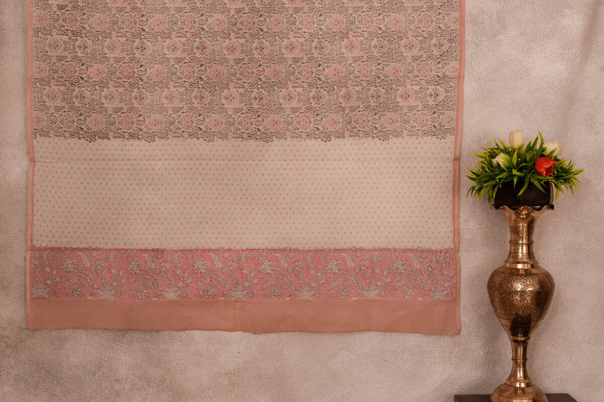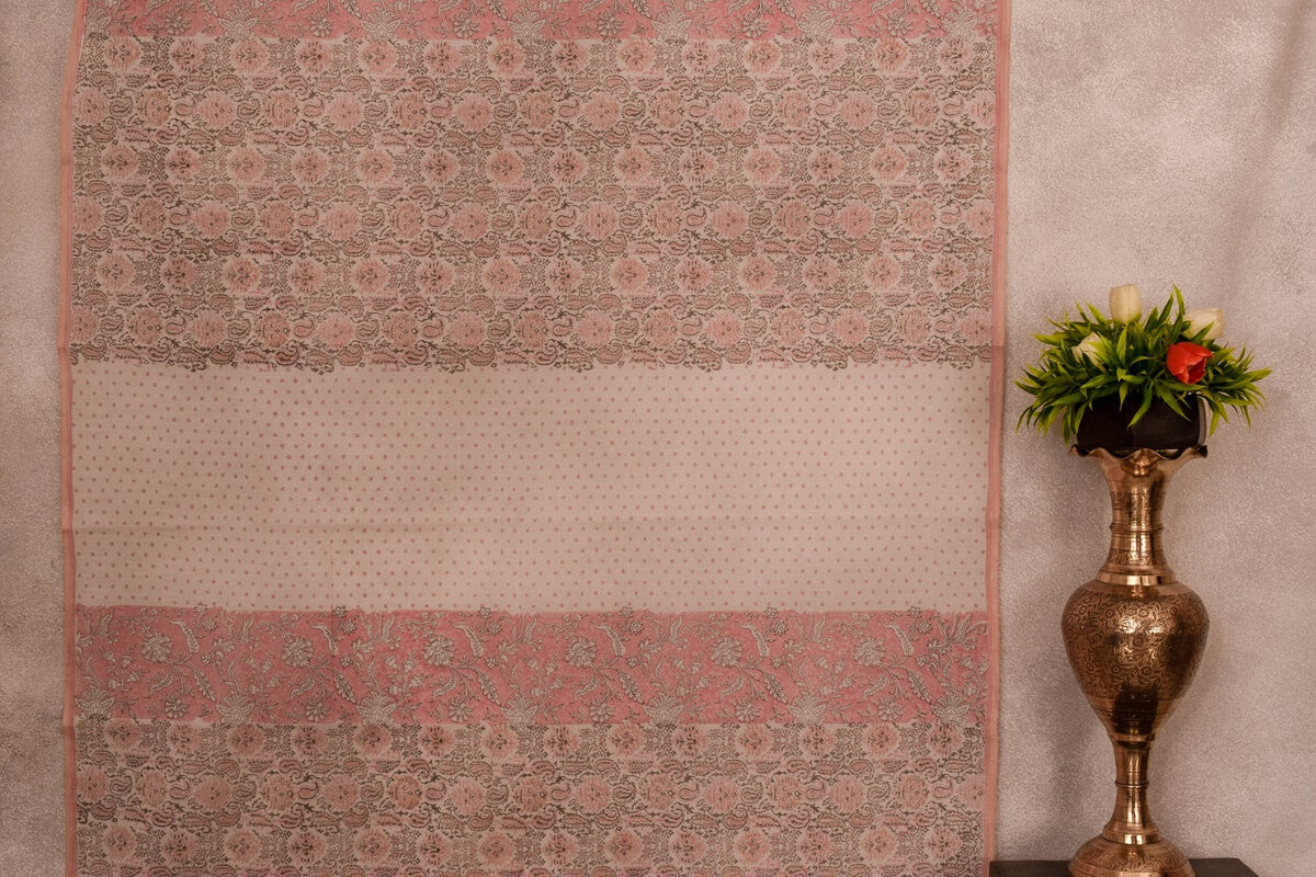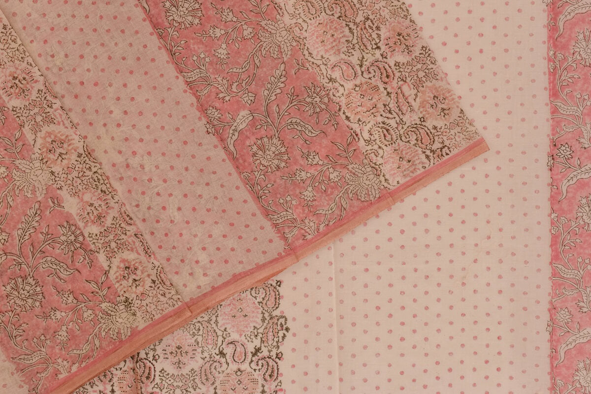 This saree features an off-white color and is made from 100% cotton. Its unique hand-block print, with floral and polka designs, is sure to make a statement. This luxurious saree is the perfect addition to any wardrobe, and its breathable cotton material ensures a comfortable wear.