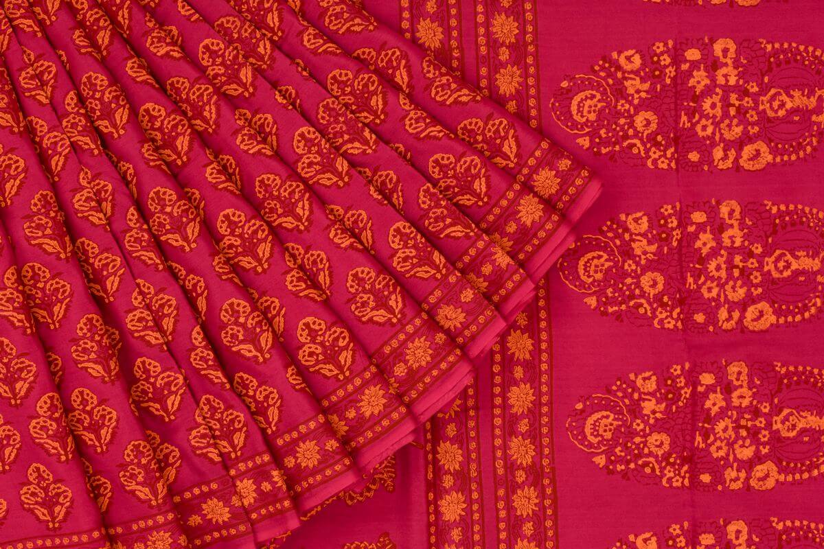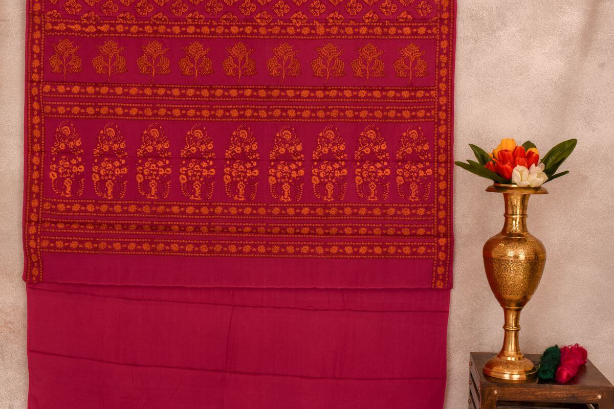 Deep Pink Hand-block printed Mulberry silk saree by Inheritance India PSSW29002