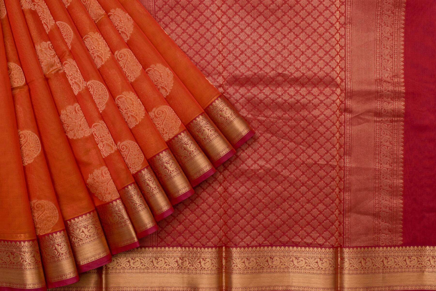 Store the saree in a dry and cool place. We recommend dry cleaning the saree rather than washing. If you have to iron, use low heat and apply iron over a cotton cloth. If possible, change the fold inside out once in three months to prevent dust accumulation.