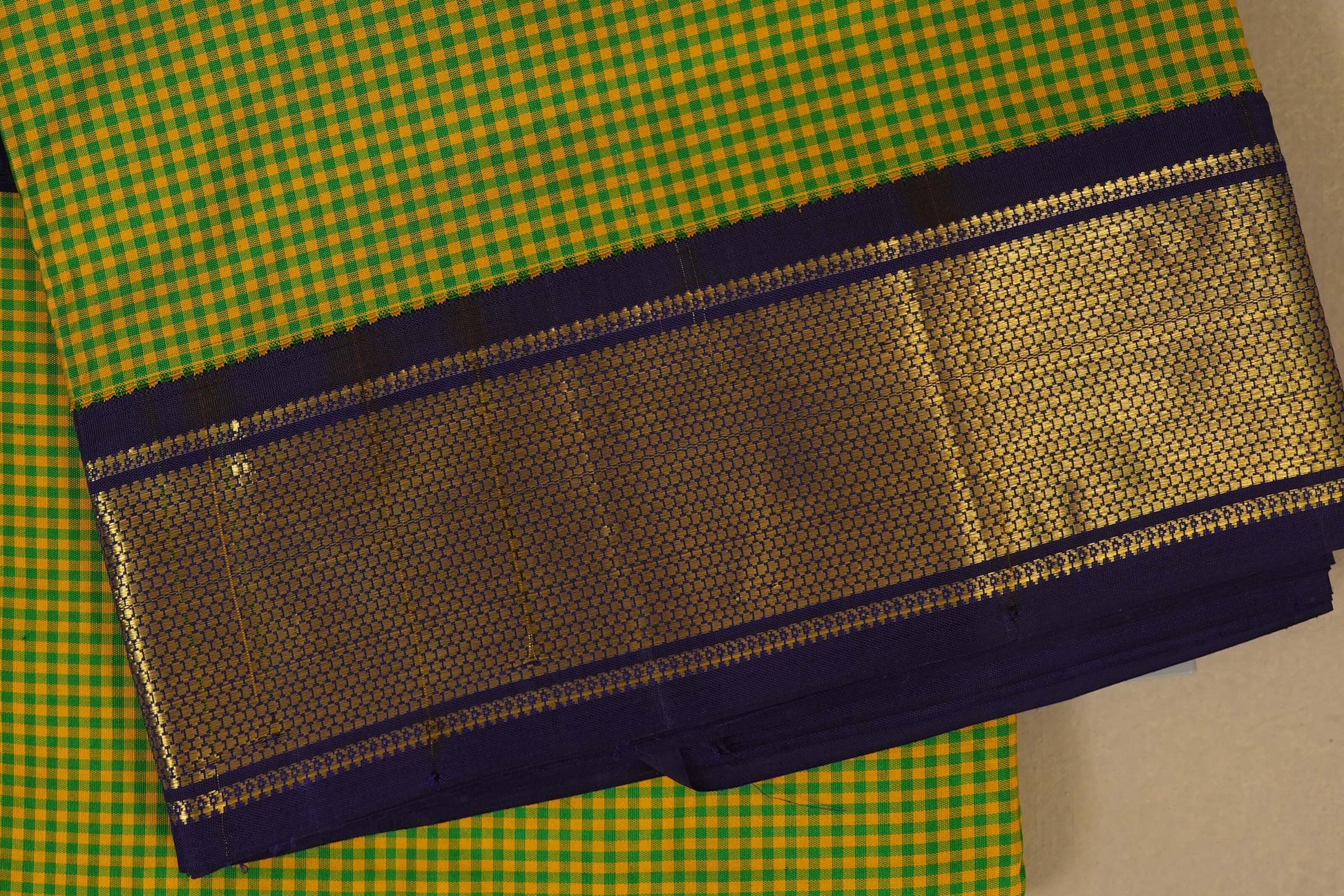 Multi color checks with dark purple borders Ten yards silk saree by Shreenivas silks PSSR017980