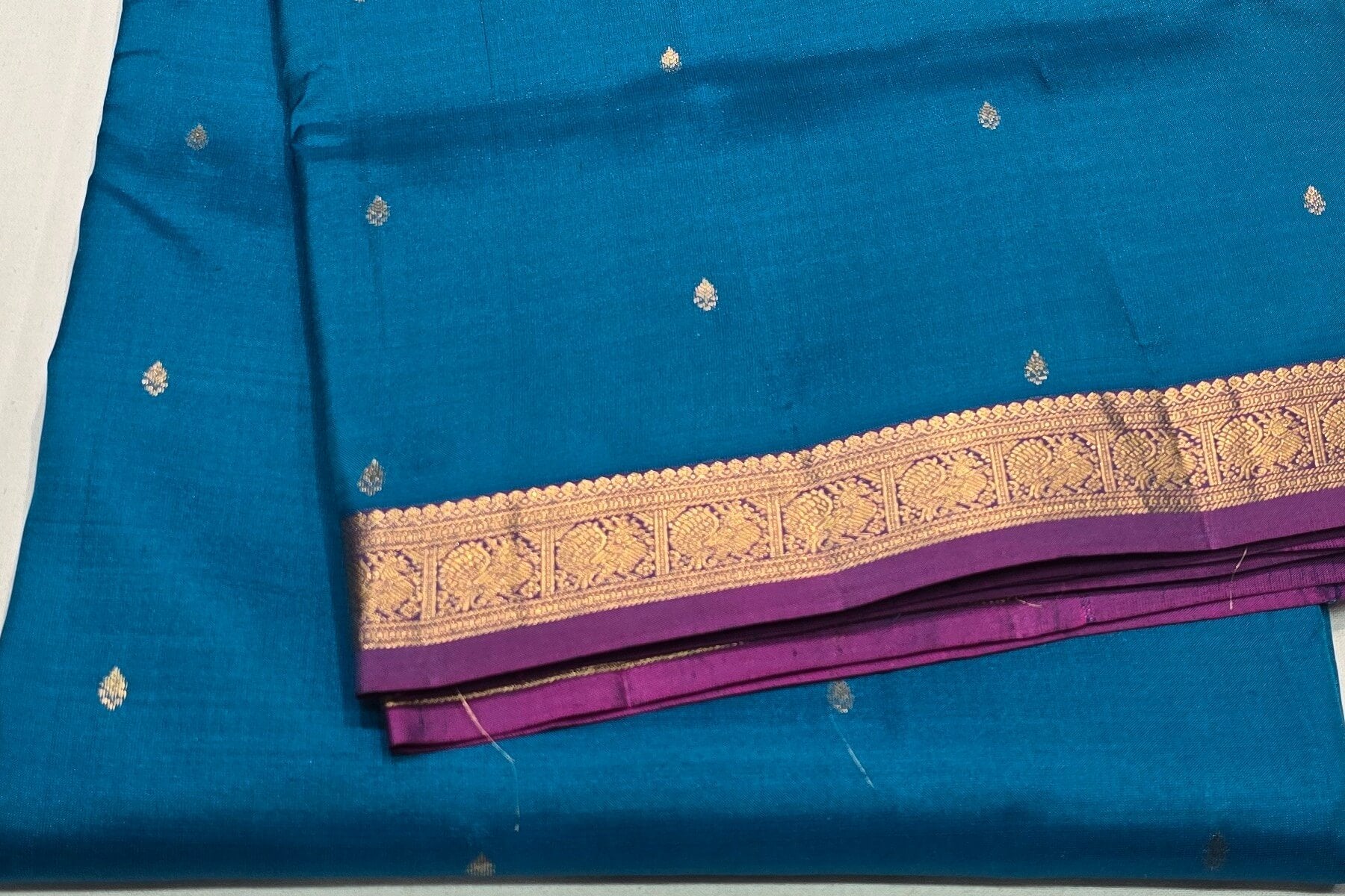 Store the saree in a dry and cool place. We recommend dry cleaning the saree rather than washing. If you have to iron, use low heat and apply iron over a cotton cloth. If possible, change the fold inside out once in three months to prevent dust accumulation.