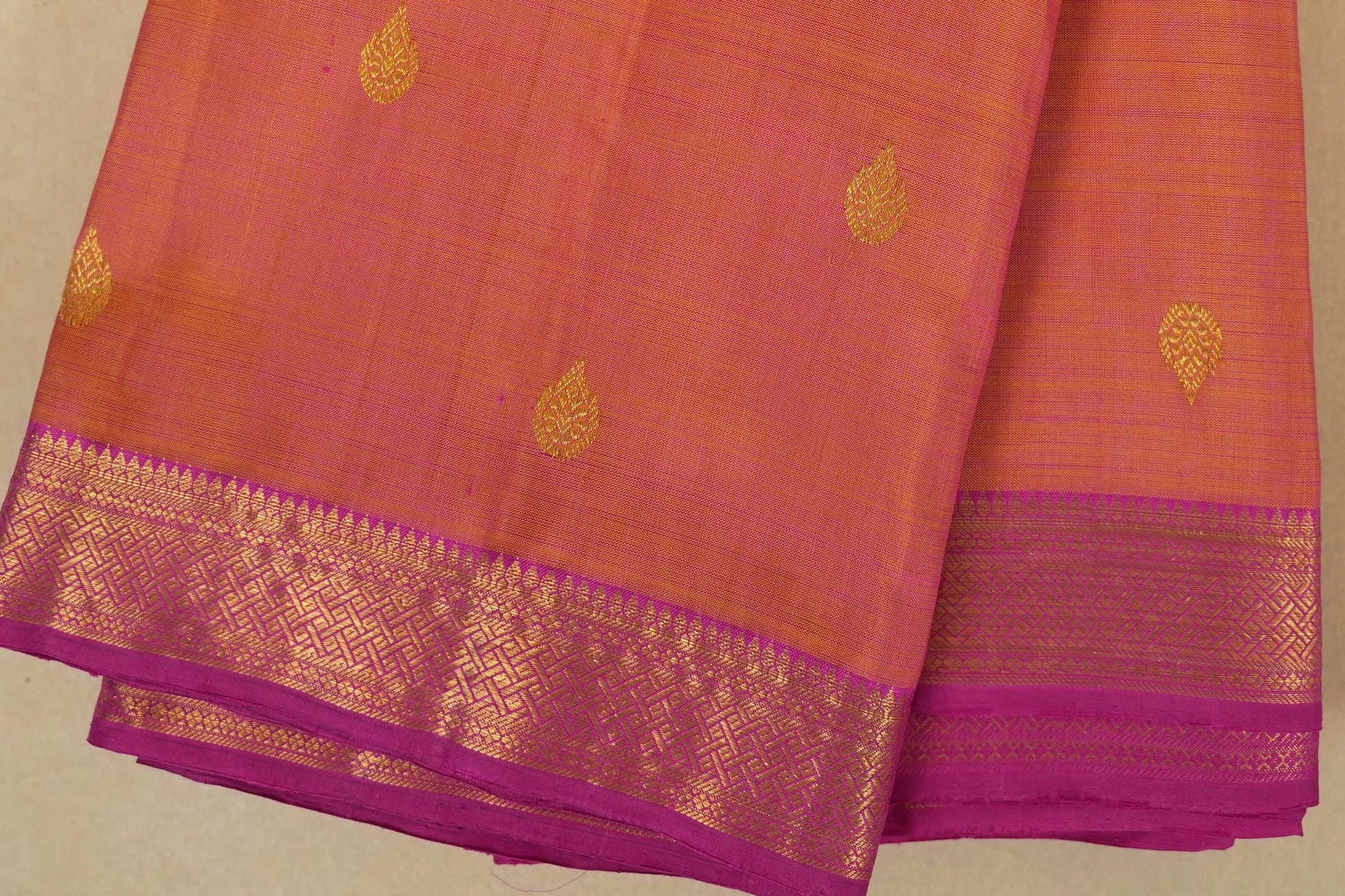 Orangish Pink Kanjivaram Silk Saree by Shreenivas Silks PSSR017765
