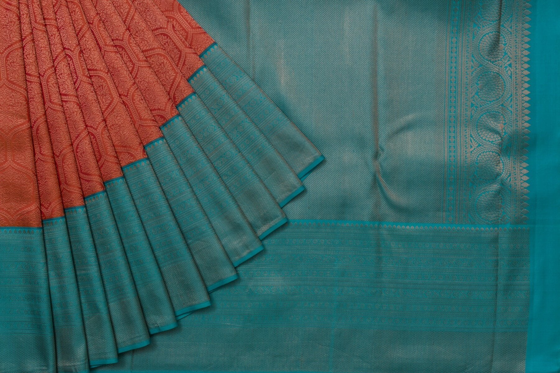 Reddish Orange Kanjivaram Silk Saree by Tharakaram PSTK04059