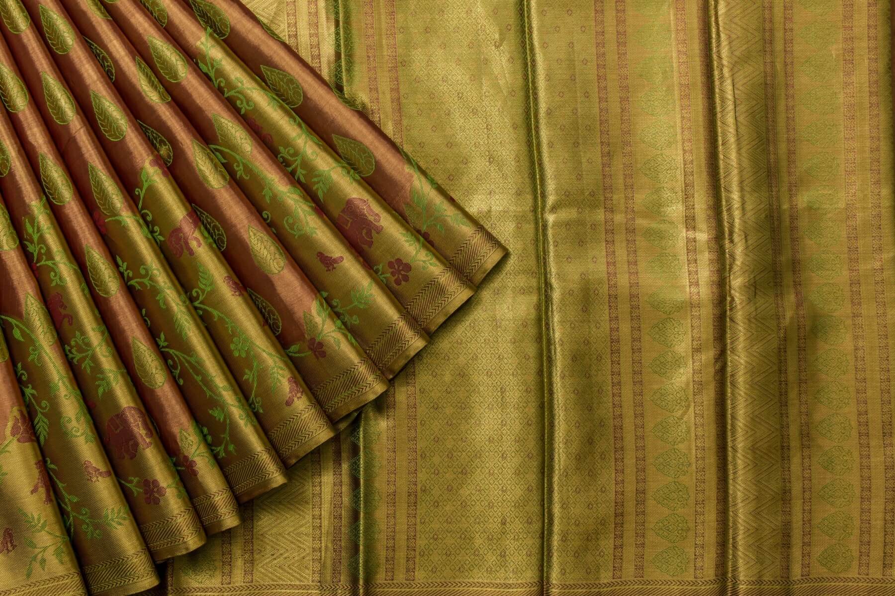 Rust Green Bridal Kanjivaram Silk Saree by Tharakaram PSTK04098