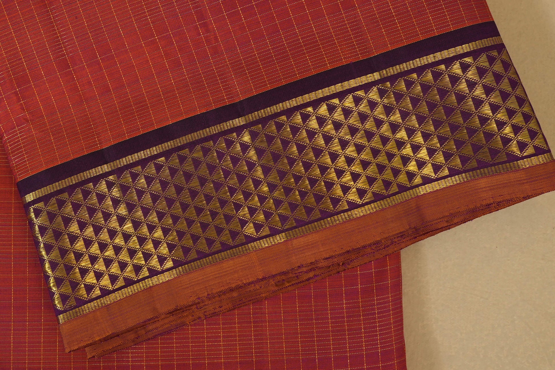 Rust with Deep Purple Borders Ten yards silk saree by Shreenivas silks PSSR017952