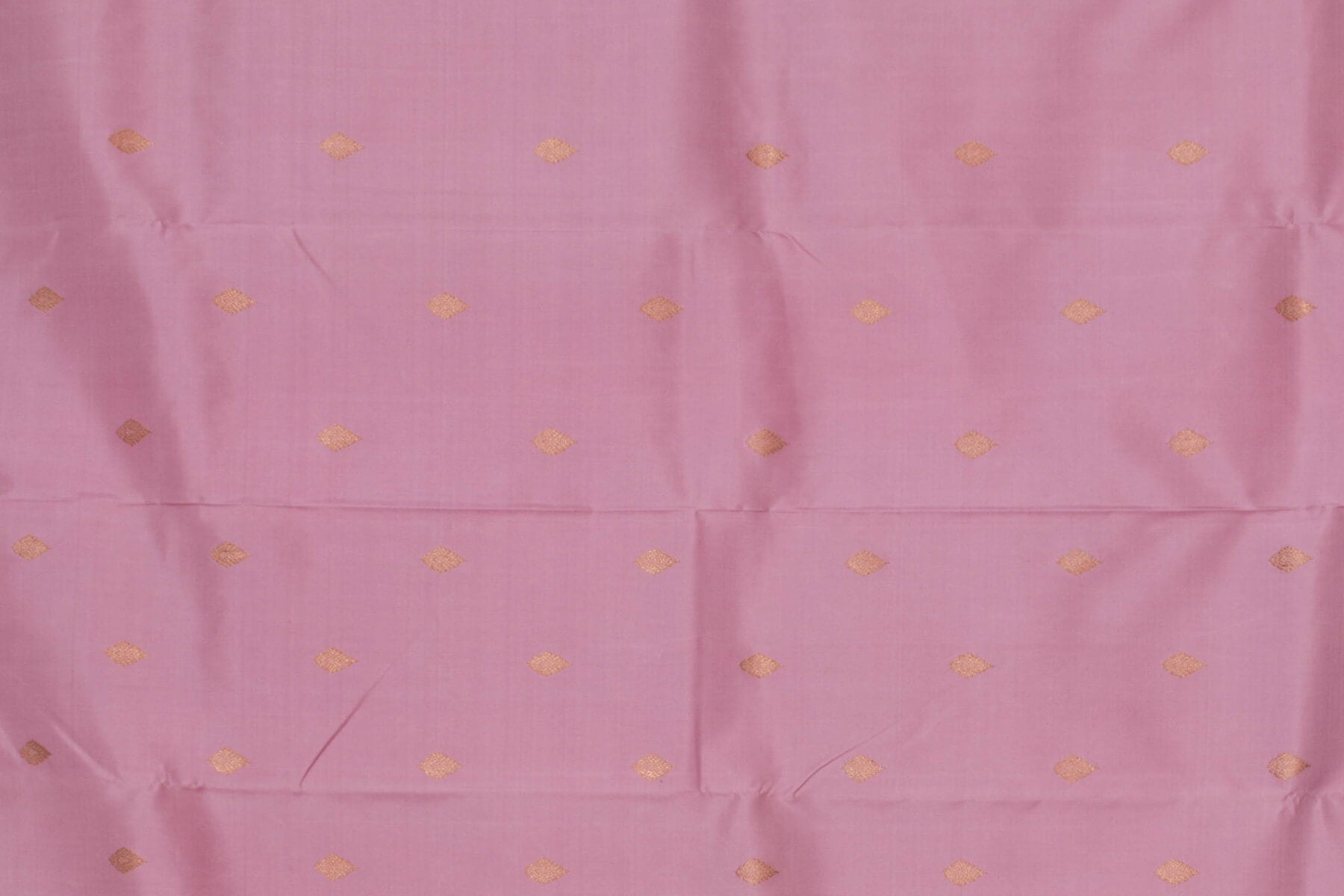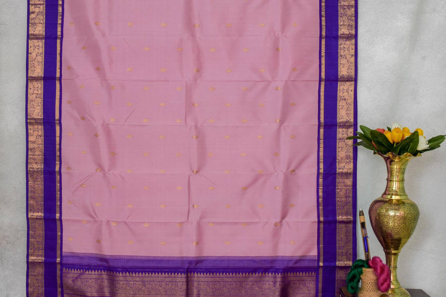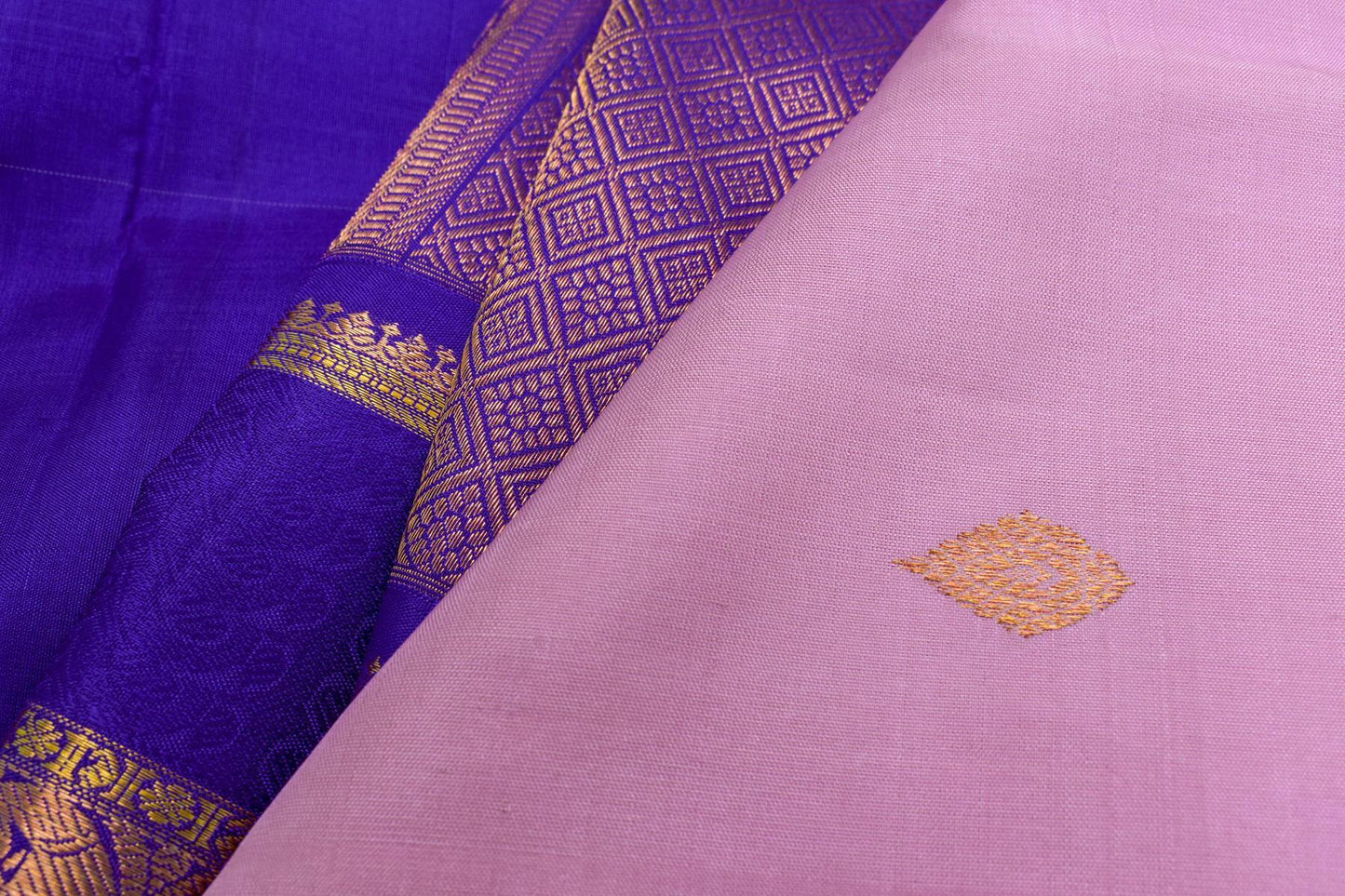 Expertly crafted from premium Kanjivaram silk, the Shreenivas Silks Saree PSSR014106 exudes elegance. The soft pink body is complemented by a deep blue border, making it a versatile and stunning addition to any wardrobe. Complete with a matching blouse and paloo, this saree is perfect for any occasion.