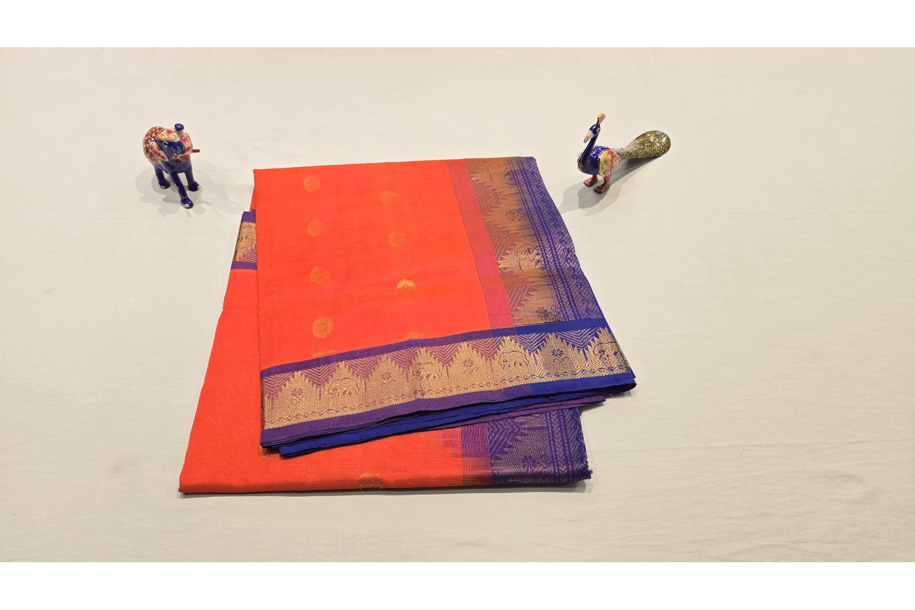 Expertly crafted with silk and cotton, the Shreenivas Silks Saree (PSSR014522) in fantya orange exudes timeless elegance. The blend of fabrics offers a comfortable fit and luxurious feel, making it perfect for any occasion. Elevate your style with this sophisticated and versatile saree.