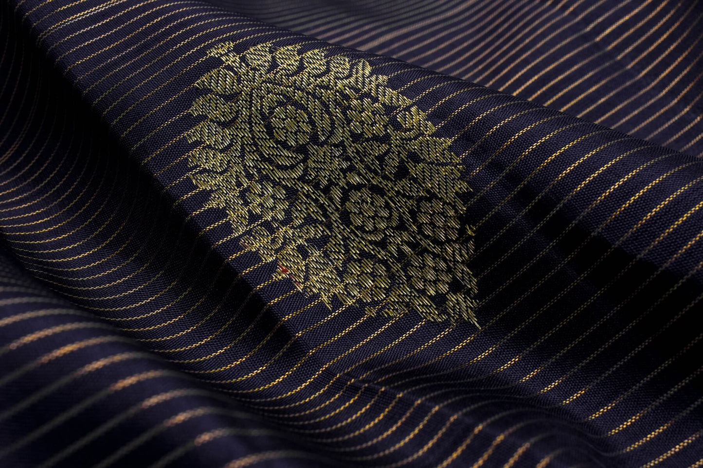 Indulge in the timeless elegance of the Sita Mahalakshmi Kanjivaram silk saree. Crafted from luxurious navy silk, this saree is a must-have for any fashionista. The intricate design and rich color make it perfect for special occasions. Elevate your style quotient with this exquisite saree.