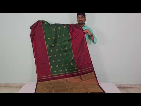 Expertly crafted, this deep green Kanjivaram silk saree is a timeless piece for any occasion. Made with exquisite attention to detail, its rich color and intricate design showcase the traditional beauty of Kanjivaram silk. Elevate your style with this luxurious and elegant saree.
