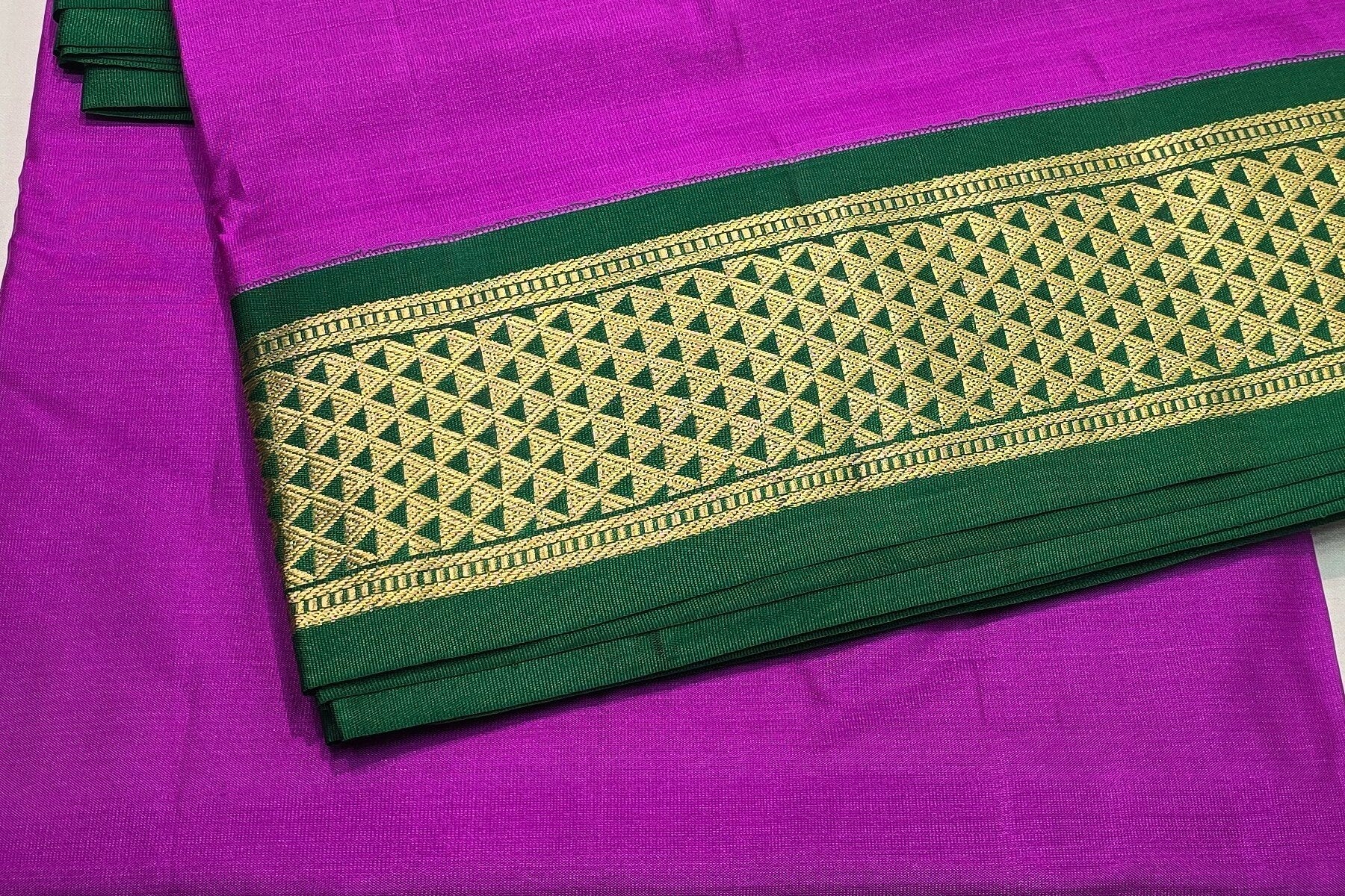 Embrace refined elegance with this exquisite magenta ten yards silk saree by A Silk Weave. Masterfully crafted with premium silk, this traditional garment captivates with its vibrant magenta hue that commands attention. The lustrous fabric cascades gracefully, creating a silhouette of timeless sophistication perfect for cultural ceremonies and distinguished gatherings where artisanal craftsmanship is truly appreciated.