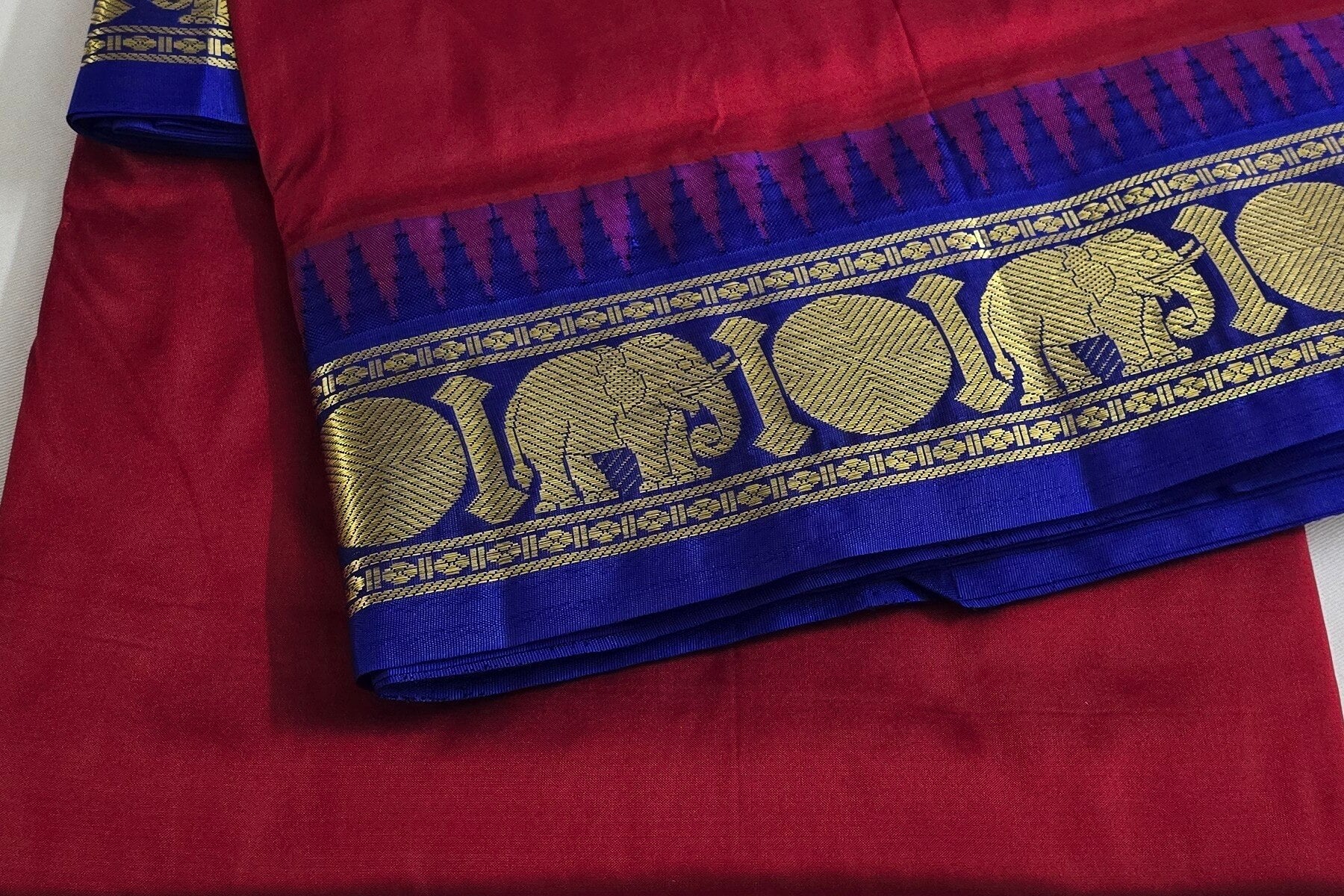 Experience elegance and luxury with our Ten Yards Silk Saree. Made with high-quality silk, this Maroon saree adds a touch of sophistication to any occasion. The traditional nine yards drape provides a flattering silhouette, making you look stylish and confident. Elevate your saree game with Shreenivas Silks and Sarees.