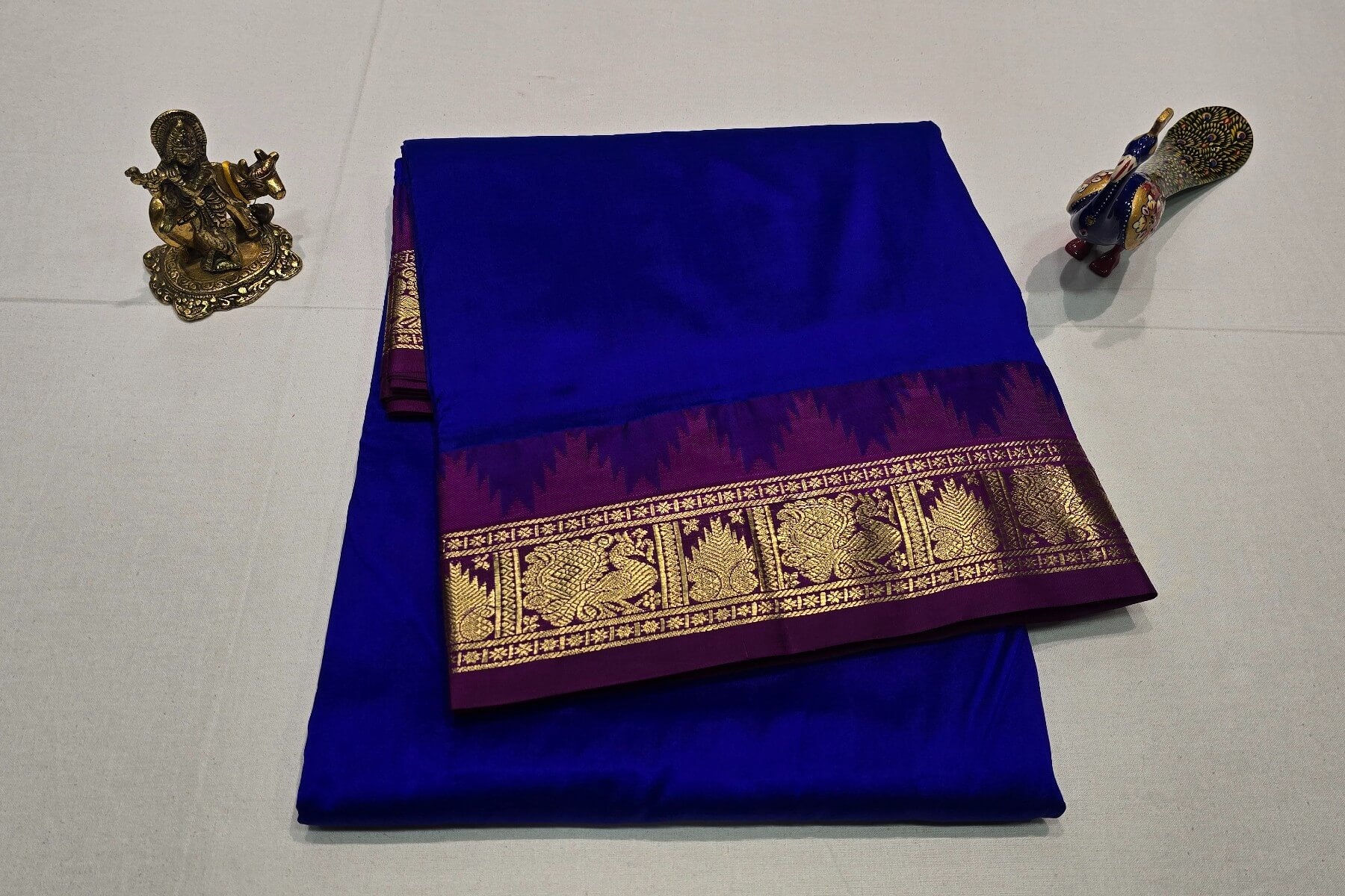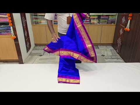 This royal blue ten yards silk saree from Shreenivas Silks exudes regal sophistication. Crafted from luxurious silk, its deep, rich hue enhances any traditional attire with timeless elegance. The ample length ensures a graceful drape, making it an ideal choice for formal occasions and festive celebrations. Embrace classic beauty and refined craftsmanship with this exquisite saree.