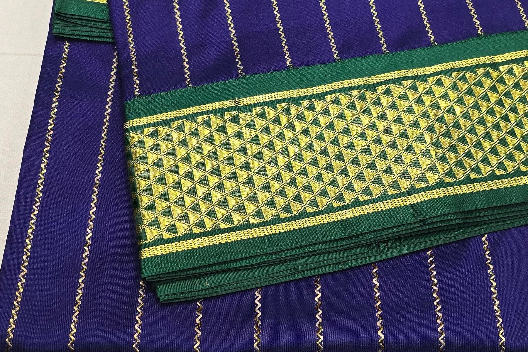 This navy blue ten yards silk saree from Shreenivas Silks combines luxurious silk fabric with traditional craftsmanship. Its extended length allows for elegant draping, while the deep navy hue adds a refined and sophisticated touch, perfect for formal and cultural occasions.